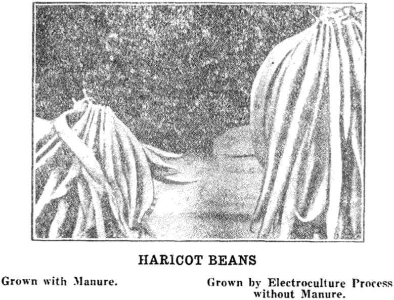 Electro-Culture also magnetizes the soil or water which technically means no nutrients; fertilizers or pesticides are needed which is probably why this technology was originally suppressed. Studies show that electroculture Potatoes grown without fertilizers grow to weight 2 pounds each. Grapes impacted by Phyloxera were healed and rejuvenated plus they became much sweeter. Carrorts gew 24 long and 12 inch circumference. An old dying pear tree was rejuvenated and produced 1 pound pears. All this without the use of manure; fertilizer; nutrients or pestisides. The only thing used was the natural atmospheric energy and wooden/copper stakes as seen above to draw that energy into the soil. The soil simply becomes magnetized which revives it meaning your soil will last much longer than usual.